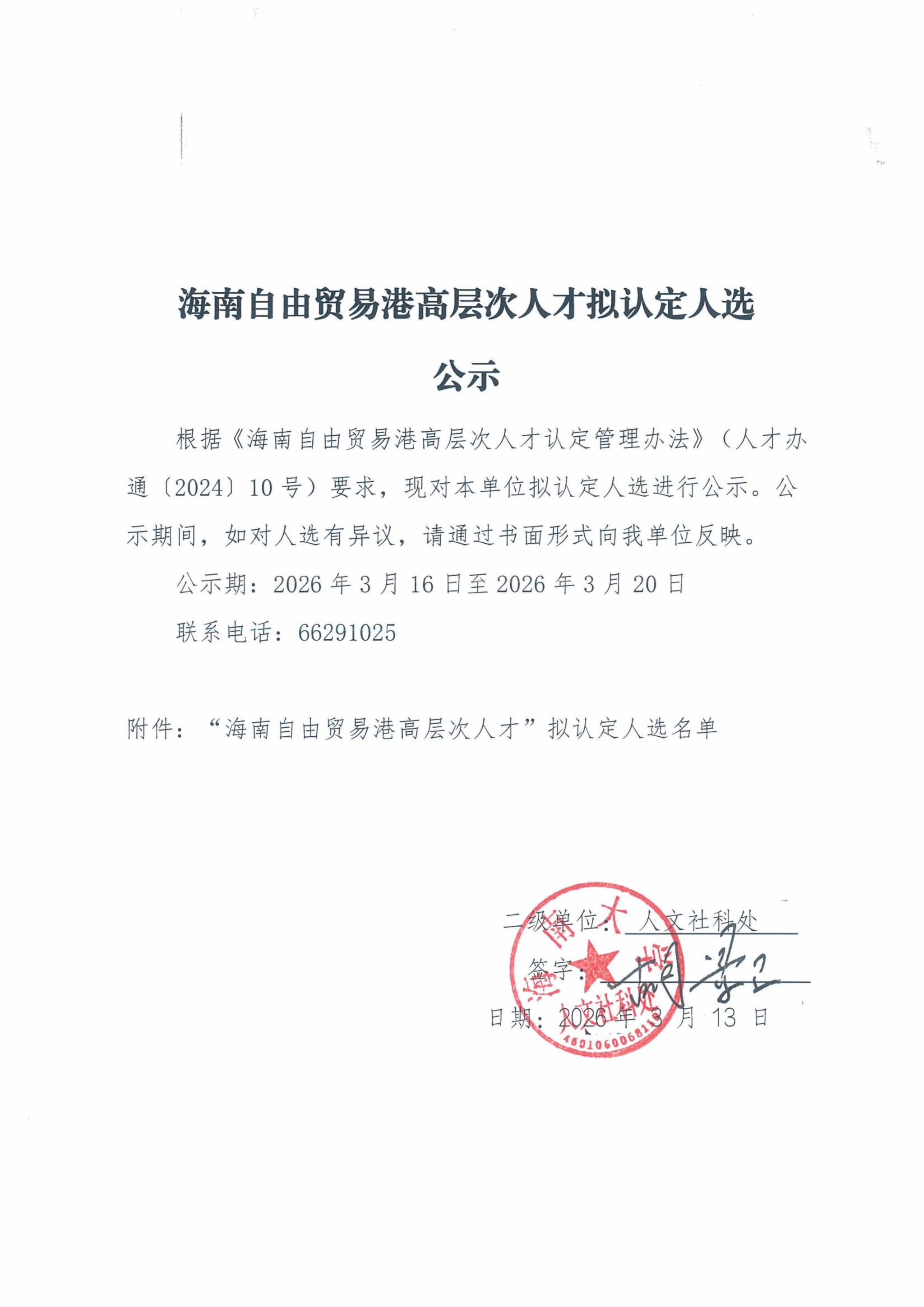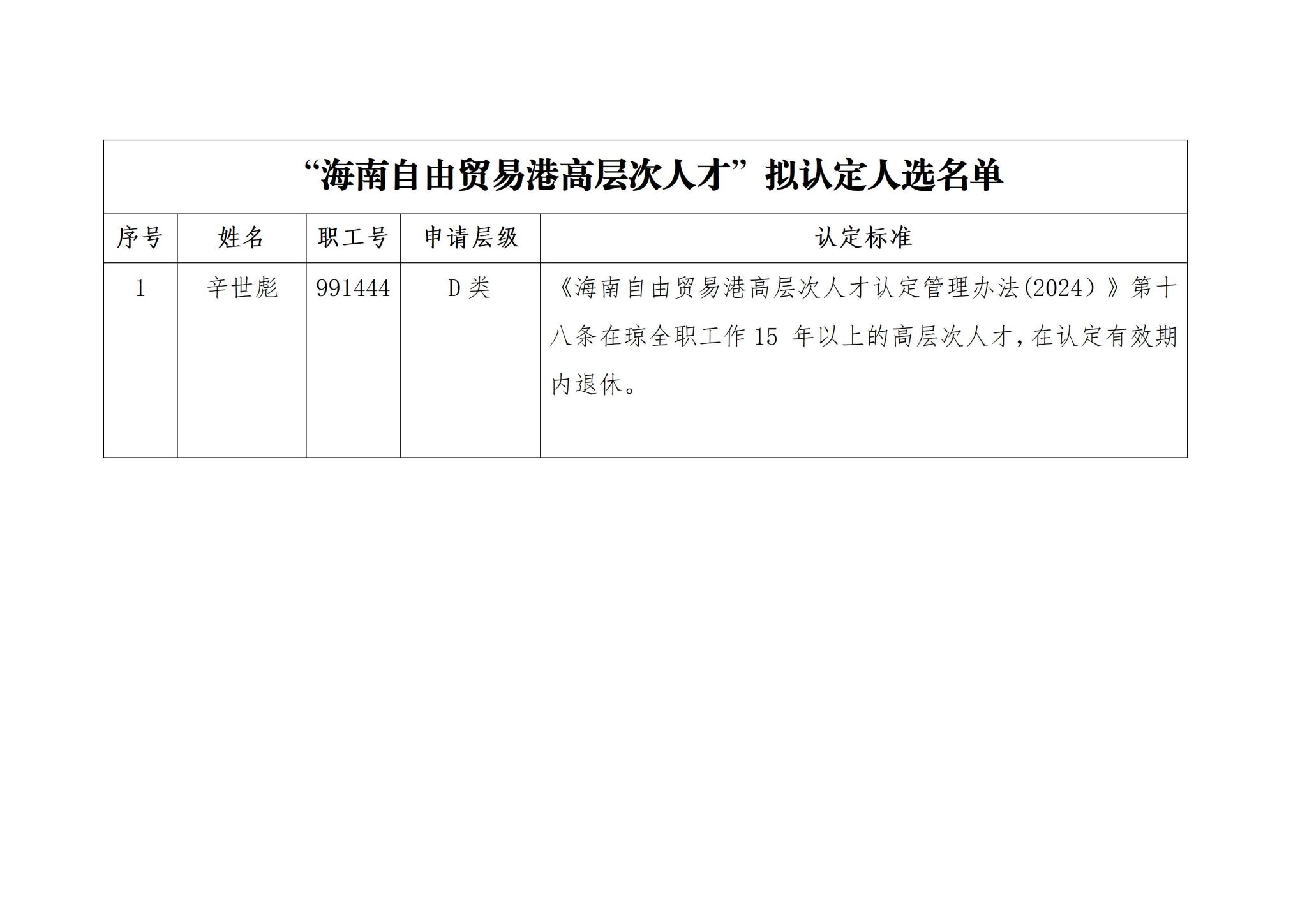 海南自由贸易港高层次人才拟认定人选公示