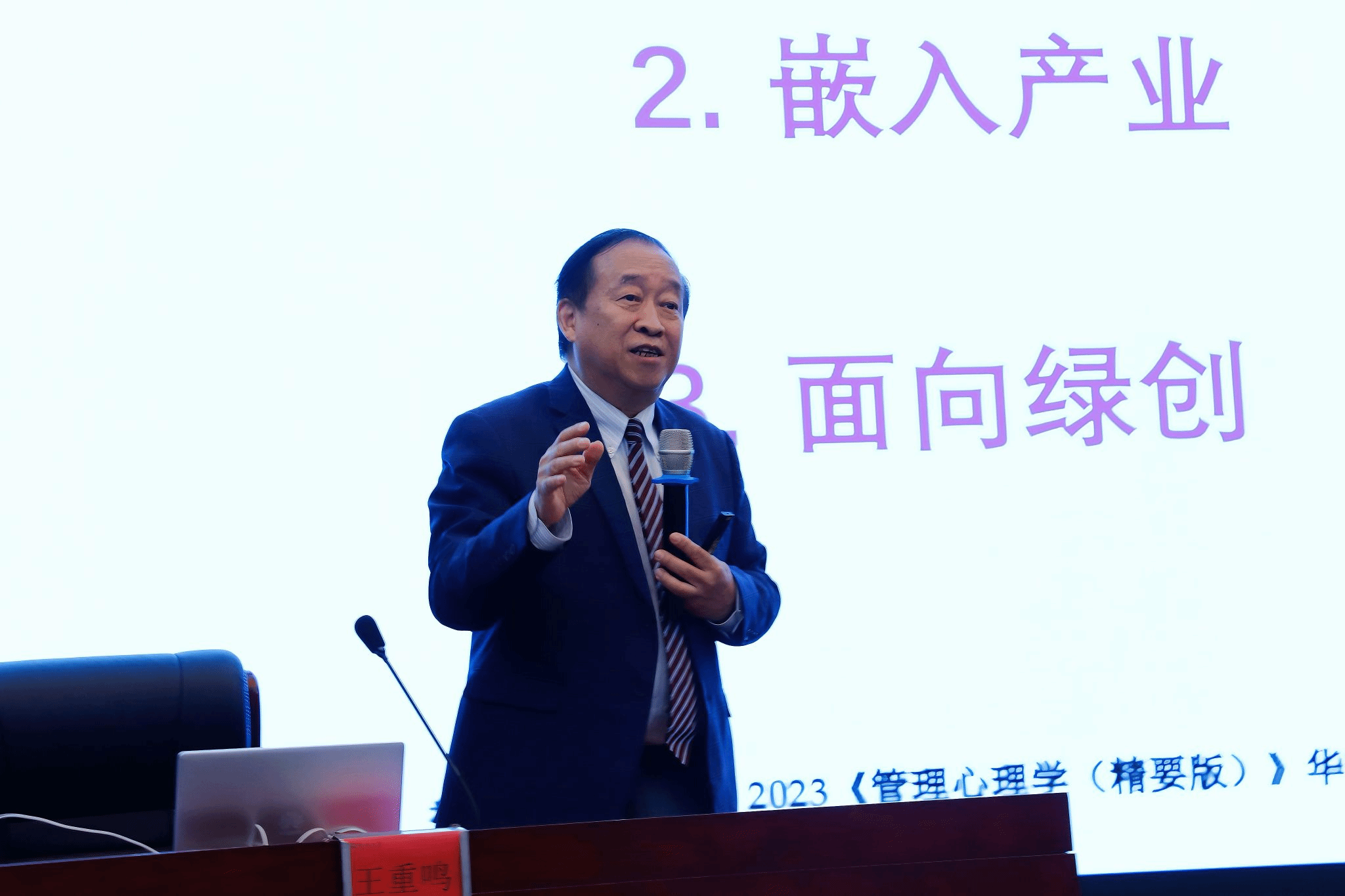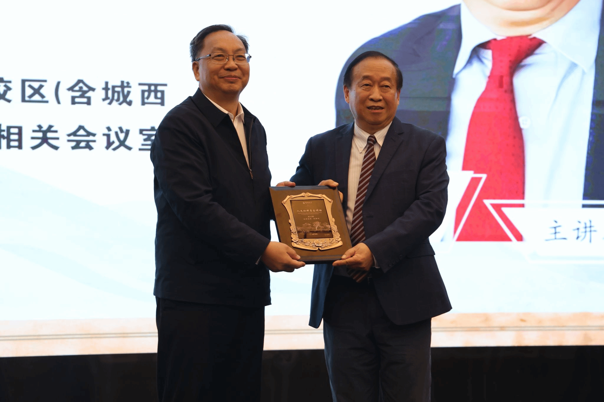 12月2日下午,海南大学举办第十五期人文社科名家讲坛。张继友代表学校向王重鸣赠送人文社科名家讲坛纪念牌。李春阳 摄