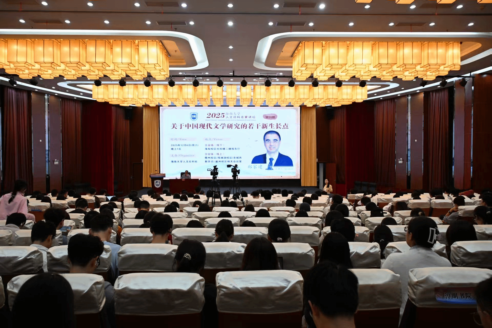 12月6日晚上,海南大学第十六期人文社科名家讲坛在社科楼二楼报告厅举办。郑家建作报告。李思颖 摄