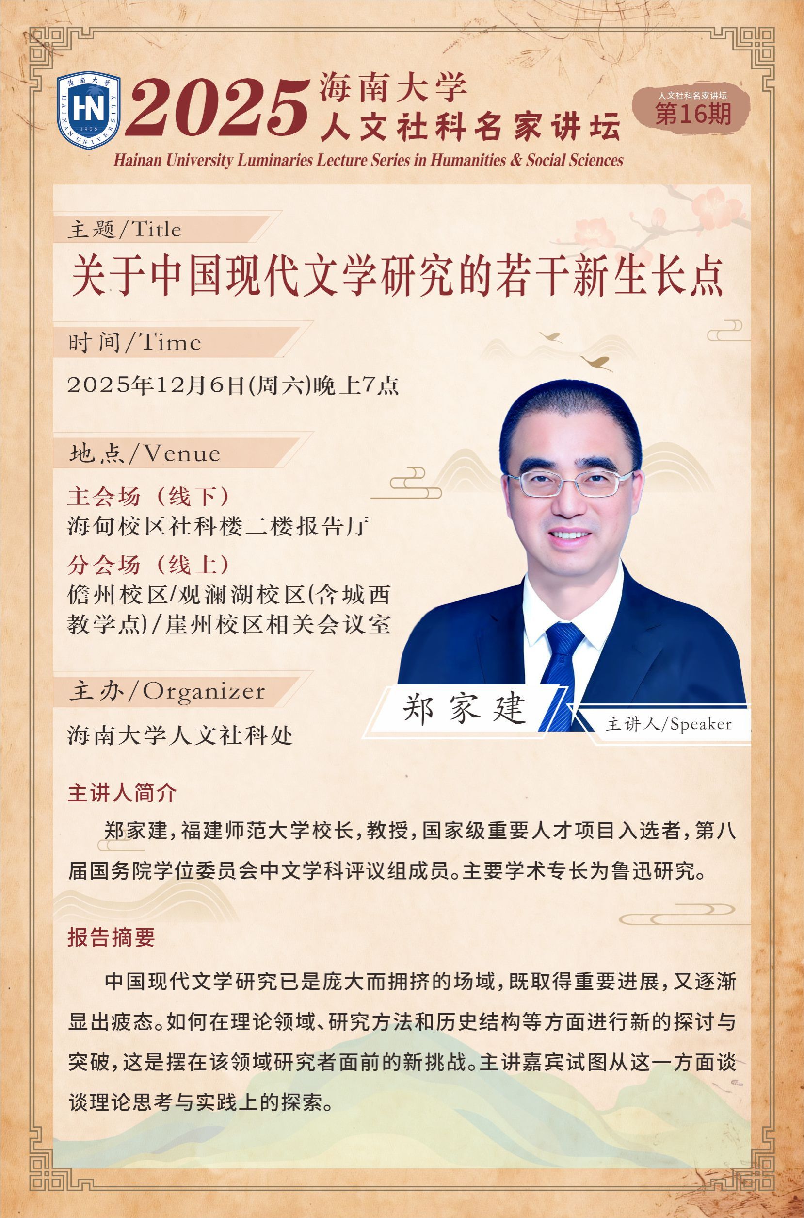 讲座时间:2025年12月6日(周六)晚上7点