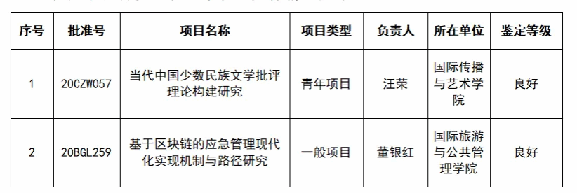 2025年12月,全国哲学社会科学工作办公室共验收633个国家社科基金年度项目结项申请。经同行专家鉴定,435个项目予以结项,191个项目暂缓结项,7个项目被终止。其中,我校有2项国家社科基金项目结项。具体情况如下: